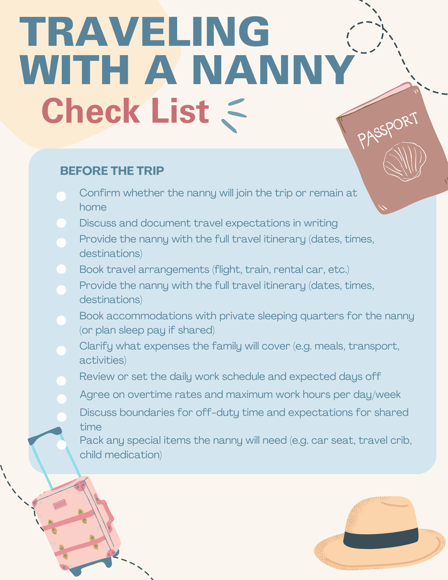 Traveling with a nanny can make vacations more enjoyable and less stressful, but it’s crucial to set clear expectations and respect your nanny's role. With the right planning and communication, your trip can be smooth, supportive, and beneficial for the whole family.